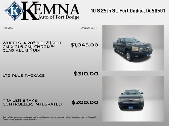 Discover the power and capability of the 2009 Chevrolet Silverado 1500 LTZ. This impressive truck is ready to take on any challenge, whether you're hauling heavy loads, towing your boat, or navigating rough terrain. With its Vortec 5.3L V8 SFI Flex Fuel engine and 4-wheel drive capabilities, this Silverado delivers the performance and versatility you need.• Wheels, 4-20 x 8.5 Chrome-Clad Aluminum• LTZ Plus Package, including Universal Home Remote, Locking Tailgate, and EZ-Lift Tailgate• Integrated Trailer Brake ControllerThe interior of this Silverado LTZ is designed with your comfort and convenience in mind. Enjoy features like Bluetooth® for phone, power steering, and remote keyless entry. The leather-wrapped steering wheel with audio controls puts all the functions you need right at your fingertips. With the OnStar® Safe & Sound system, you'll have peace of mind knowing you're connected to emergency services if needed.This Silverado also boasts impressive safety features, including ABS brakes, dual front impact airbags, and the StabiliTrak Stability Control System. The front anti-roll bar and front wheel independent suspension provide a smooth, responsive ride, while the heavy-duty rear automatic locking differential and auxiliary transmission oil cooler ensure reliable performance, even in the toughest conditions.The exterior of this Silverado LTZ is sleek and stylish, with a bold black finish and chrome accents that give it a commanding presence on the road. The solar-ray deep-tinted glass and delay-off headlights add to the vehicle's sophisticated appearance.Whether you're tackling work projects, enjoying outdoor adventures, or simply commuting in style, the 2009 Chevrolet Silverado 1500 LTZ is the perfect companion. With its exceptional capabilities, impressive features, and attractive design, this truck is sure to exceed your expectations. Visit our showroom today to experience the power and versatility of the Silverado LTZ for yourself.