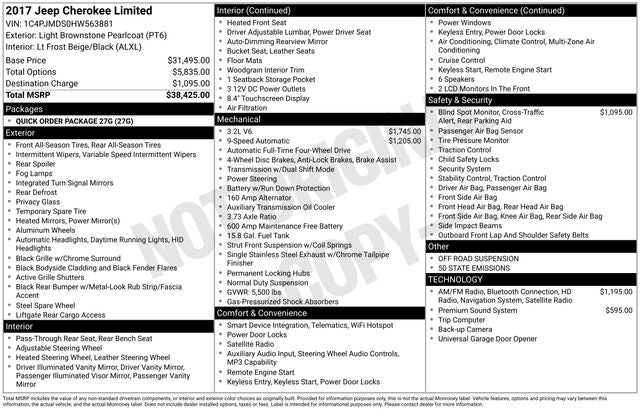 Discover the exceptional value and uncompromised performance of this 2017 Jeep Cherokee Limited. With its striking beige exterior, this SUV is not only stylish but also built to tackle any adventure. Boasting a powerful 3.2L V6 engine paired with a responsive 9-speed automatic transmission, this Jeep delivers impressive power and efficiency, with an EPA-estimated 18 city/26 highway MPG.