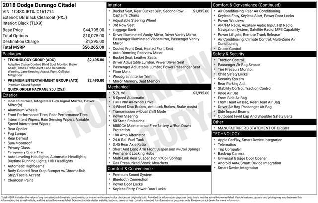 With its impressive capabilities, premium amenities, and head-turning good looks, this 2018 Dodge Durango Citadel is a must-see. Visit our showroom and let us demonstrate how this exceptional SUV can elevate your driving experience. We're confident you'll be impressed by its uncompromising quality and value.