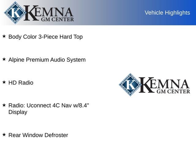 This Jeep Gladiator Rubicon comes with the Kemna Certified Advantage, ensuring you can drive with confidence. Enjoy the peace of mind of a 1-year EG Repel Paint Protector, 1-year EG Repel Interior Protector, 1-year Collision Deductible, and 1-year Key Fob Replacement. Plus, you'll benefit from a 6-month/6,000-mile Premier Limited Warranty and a 6-month/6,000-mile Limited Warranty, along with complimentary rental vehicles, 6 months of free car washes, and discounts on Auto Spa purchases and accessories.