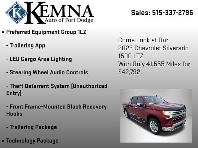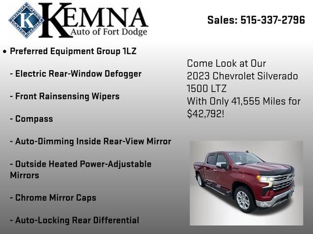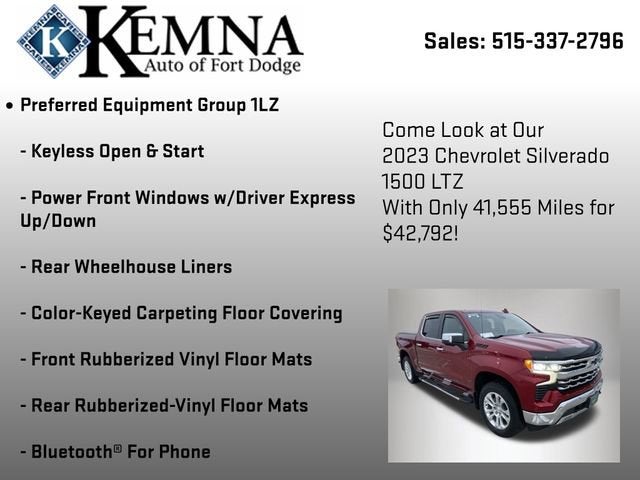 Whether you're tackling tough jobs, towing heavy loads, or simply enjoying the open road, this 2023 Chevrolet Silverado 1500 LTZ is the ultimate companion. With its exceptional capabilities, advanced technology, and premium features, it's the perfect choice for discerning drivers who demand the very best. Visit our showroom today and experience the power and refinement of this remarkable Silverado for yourself.