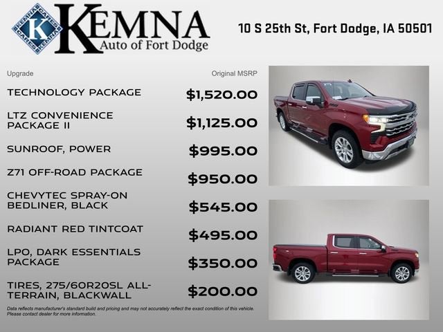 The exterior of this Silverado LTZ exudes confidence and style, with a striking Radiant Red Tintcoat paint finish and a host of premium touches, including chrome mirror caps, LED fog lamps, and a Chevytec spray-on bedliner. Step inside, and you'll be greeted by a spacious, well-appointed cabin that offers unparalleled comfort and convenience. Heated and ventilated front seats, a heated steering wheel, and a panoramic power sunroof are just a few of the luxurious amenities that await you.